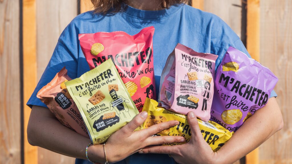 A travers l’achat de chips, de sablés apéro, ou encore de cookies produits en France, les consommateurs peuvent financer des dons concrets aux personnes dans le besoin et ce, pour le même prix qu’un paquet de chips ou gâteau classique.