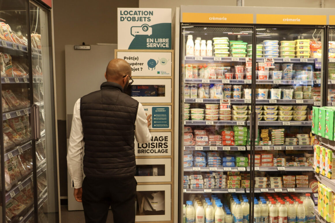 À l’extérieur, un espace Fruits & Légumes avec encaissement dédié et signalétique façon primeur renforce la visibilité du magasin. L’offre de services s’élargit également avec la conciergerie de bagages Nannybag, la location d’équipements du quotidien avec Les Biens en Commun, la consigne de clés avec Keynest ou encore le retrait de colis Amazon.