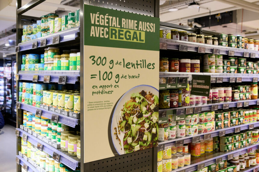 Politique Produits contribuant à la lutte contre le changement climatique : Veggie, APA (alternative protéine animale), produits moins énergivores, plus réparables, made in France/locaux, sans emballage.